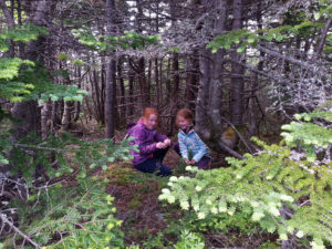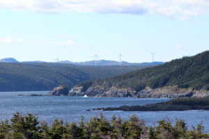 The beaches, cliff sides, the ocean’s sprawl and even the giant wind mills made for wonderful conversation. But the botany exhibited along the trail side is so terribly unique and notable that it became the focus of our hike; made that much more interesting by the harsh conditions to which its growth cycle is subjected. The howling winds, salt spray, snow and the ice cause the plant life in this region to gnarl in and upon itself in a most distorted and twisted fashion that creates magnificent, sculptural displays of nature’s own ‘modern art’ exhibit. As I rounded the last corner of the trail and emerged from the woodlands on to the clearing of Ferryland bluff I commented on how much the landscape reminded me of a ‘Gerry Squires’ painting.