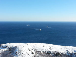 I took a young couple out on a St. John’s / Cape Spear tour yesterday. Not how I expected to spend my afternoon since it’s not exactly our busy season and we wouldn’t normally run a tour bus for two people. But it was a lovely day, the sun was shining, the temperatures were relatively mild and I am especially curious about any guests who visit Newfoundland at this time of year. As you can see from the photographs, I was well rewarded in every way and their company was stellar.
