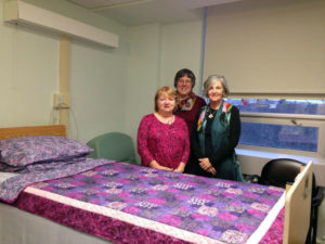To date we are very pleased to report we have accepted from our members and delivered to a very grateful Palliative Care Unit at the Miller Centre in St. John’s, Newfoundland some 15 beautiful quilts. Donna Mactavish, our President, Outreach Committee members: Karen Martin and Regina McCarthy visited the Unit just before Christmas and brought the quilts that were finished to the unit. The staff were delighted and before we left the unit they had put a quilt on one of the beds for a patient arriving that evening.