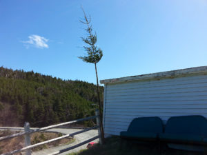 What a wonderful time we had touring this afternoon. My son Andrew; Francis Corrigan; Mike Edmunds and I jumped aboard the van after dinner and we all headed north to meet the St. Michael’s Boys Choir Group at Saint Anne’s Community Hall in the town of Flat Rock.This was a very different experience for us since guides normally travel independently and use one of the hotels as a starting point for our tours. Needless to say, we had a great conversation on the ride down the coast with Francis as chair and lead man for the yarns; highlighted with a story about the ‘May Bush’ – something I hadn’t thought about in years but was commonly seen in Catholic communities during the month of May. A May Bush was a spruce tree skinned of its boughs, less the top couple of feet which was decorated in blue ribbons to fly like a flag in honour of the Virgin Mary and Mother’s everywhere.