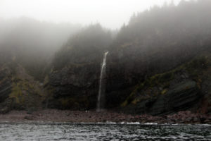 We’d just finished checking our pots and the boys were transferring that mornings haul of lobsters from the boat to the holding pound we’ve moored smack dab in the middle of Freshwater Bay. This is at best a two-man job so rather than sit idly, I decided to give the boat a bit of a clean-up, scooping a five gallon bucket of seawater from over her gunnel. As I sloshed the contents across the floor boards I was surprised to see a distinct discoloration in the water I’d collected. I checked to see if the bucket was dirty and seeing that it was perfectly clean I scooped another pail full of what we’d call “brookwater” here in Newfoundland – tainted with a brownish colour from the trees tannin and the iron in our bogs. And then it struck me, with a cupped hand I scooped a handful to my mouth and sure enough,,,,, during a good run off there are so many rivers, waterfalls, ponds, gullies, brooks, and streams – the top layer of the bay “pools up” and it literally becomes a “fresh water bay”.