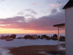 Of course, we Newfoundlanders are often the guiltiest when it comes to paying heed to our own advice and so my wife and I almost cancelled our trip to Bonavista this past weekend due to the inclement forecast. Fortunately it was my father in laws birthday so the obligatory visit encouraged us to press on. We packed clothing for every occasion, booked tickets to the St. Patrick’s day show at the ‘Garrick Theater’s’ new ‘Annex Pub’, called ahead with our plans and set off. And what a weekend we had. Yes, we were stuck in a monstrous snowstorm for a couple of days and yes I had to shovel several driveways on my time off – great bit of exercise anyway. But we also saw some of the most glorious sunny days imaginable, witnessed the spectacular winter sunsets for which Newfoundland is so famous. We went ice skating and sliding. Took a drive or two out to the ‘Cape’, walked frequently, shared a few drinks, visited friends, baked cookies and buns, swapped yarns, read a lot, wrote even more and spent an awful lot of time laughing and smiling with family & friends.